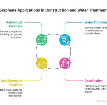 R & D in self-healing graphene-cement composites that autonomously repair microcracks, dramatically extending infrastructure longevity is getting a big push. In water treatment, researchers are engineering graphene oxide membranes capable of removing heavy metals, microplastics, and pharmaceutical contaminants — challenges beyond conventional filtration.