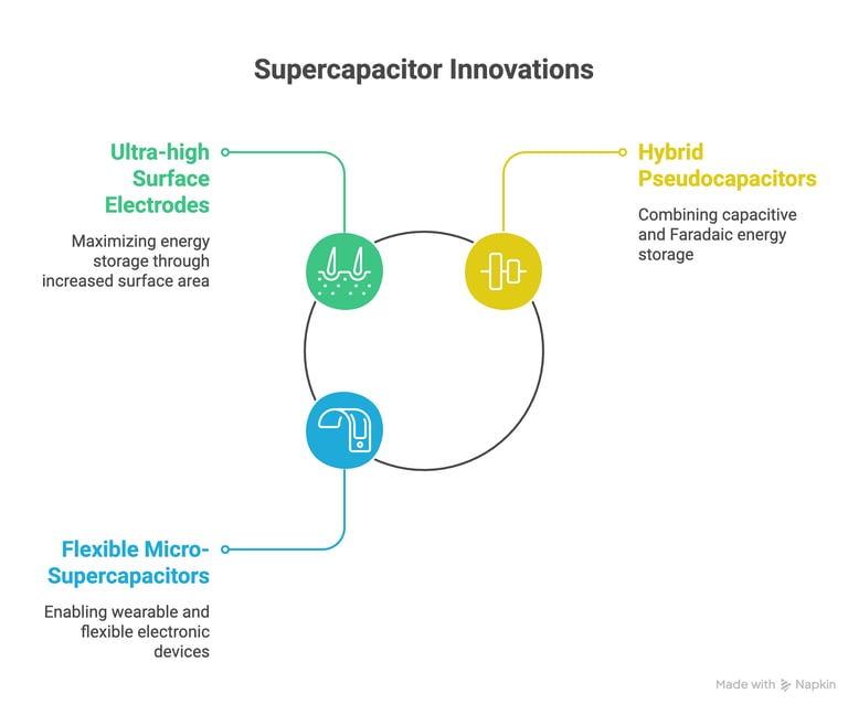 Recent breakthroughs in holey graphene architectures have pushed energy density beyond 85 Wh/kg, narrowing the gap with lithium-ion cells. The US Department of Energy's ARPA-E programme and the EU Graphene Flagship are co-funding hybrid graphene–pseudocapacitor systems targeting commercial energy density parity with batteries by 2028.